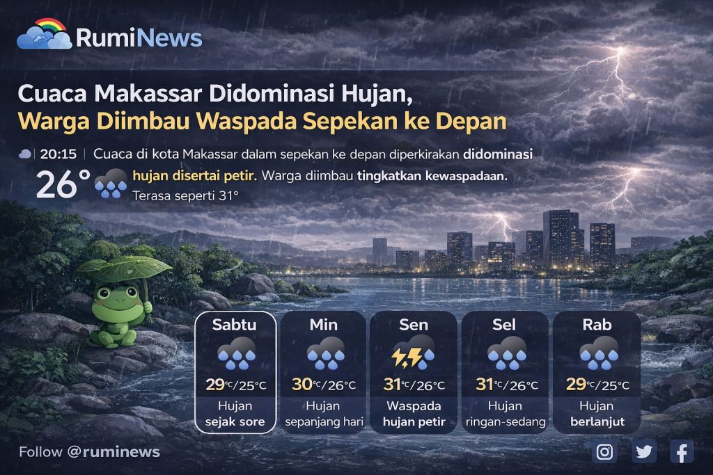ruminews.id, MAKASSAR — Kondisi cuaca di Kota Makassar dalam sepekan ke depan diperkirakan masih akan didominasi oleh hujan dengan intensitas […]