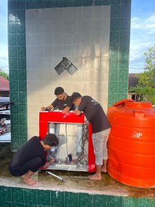 Penerapan alat ini tidak hanya berfokus pada hasil akhir berupa air bersih, tetapi juga disertai dengan edukasi kepada masyarakat terkait cara pengoperasian dan perawatan alat. Melalui peragaan langsung, masyarakat diperkenalkan dengan pemanfaatan teknologi sederhana yang dapat diterapkan dalam kehidupan sehari-hari.