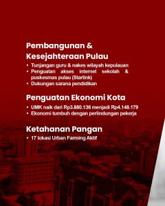 Ruang-ruang publik kembali hidup, sarana lingkungan diperkuat, dan pembangunan tidak lagi terpusat, melainkan menjangkau lorong-lorong hingga kawasan pinggiran kota.