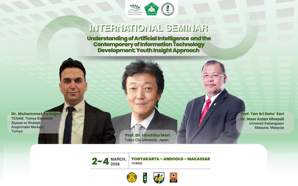 ruminews.id, International Seminar – Seminar internasional bertajuk “Understanding of Artificial Intelligence and the Contemporary of Information Technology Development: Youth Insight Approach” akan digelar pada 2–4 Maret 2026 dengan format hybrid di tiga lokasi sekaligus, yakni Yogyakarta, Andoolo, dan Makassar.