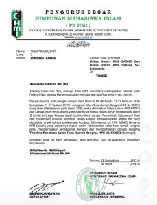 ruminews.id, Jakarta – Himpunan Mahasiswa Islam melalui Pengurus Besar (PB HMI) secara resmi mengumumkan daftar daerah calon tuan rumah pelaksanaan Kongres HMI Ke-XXXIII yang akan digelar pada tahun 2026. Penetapan tersebut merupakan hasil Pleno II PB HMI yang dilaksanakan pada 12–15 Februari 2026.