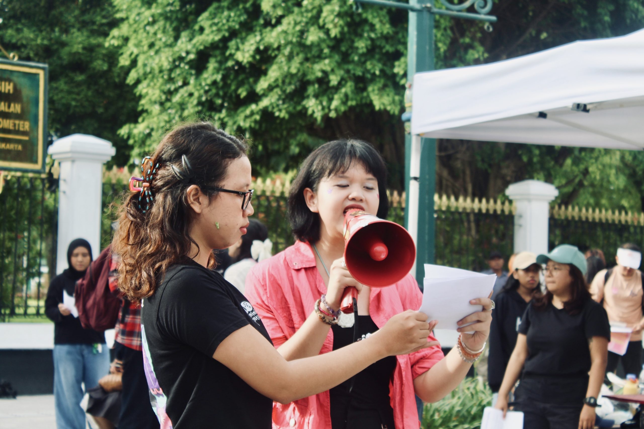 “Dengan jargon ‘pembangunan nasional’, perempuan* dan kawan ragam gender malah mengalami penindasan berlapis dalam segala sektor kehidupan. Maka dari itu, penindasan perempuan* dan kawan ragam gender terjadi secara struktural.”