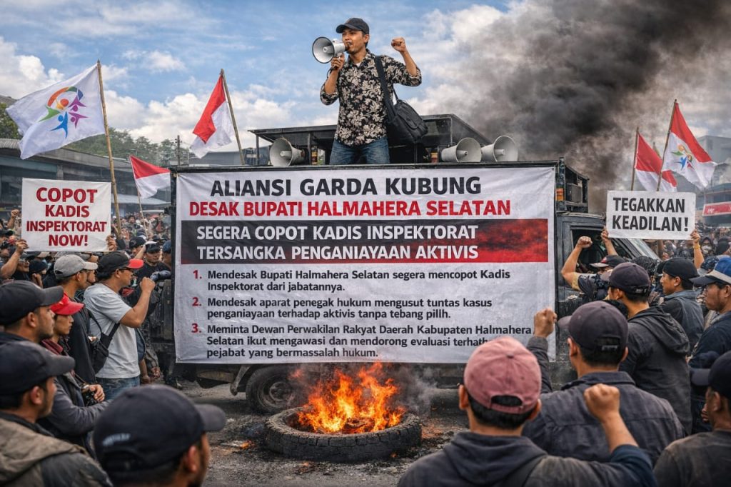 ruminews.id, Halmahera – Aliansi Garda Kubung secara tegas mendesak Hasan Ali Bassam Kasuba untuk segera mencopot Kepala Dinas Inspektorat HalmaherKabupaten