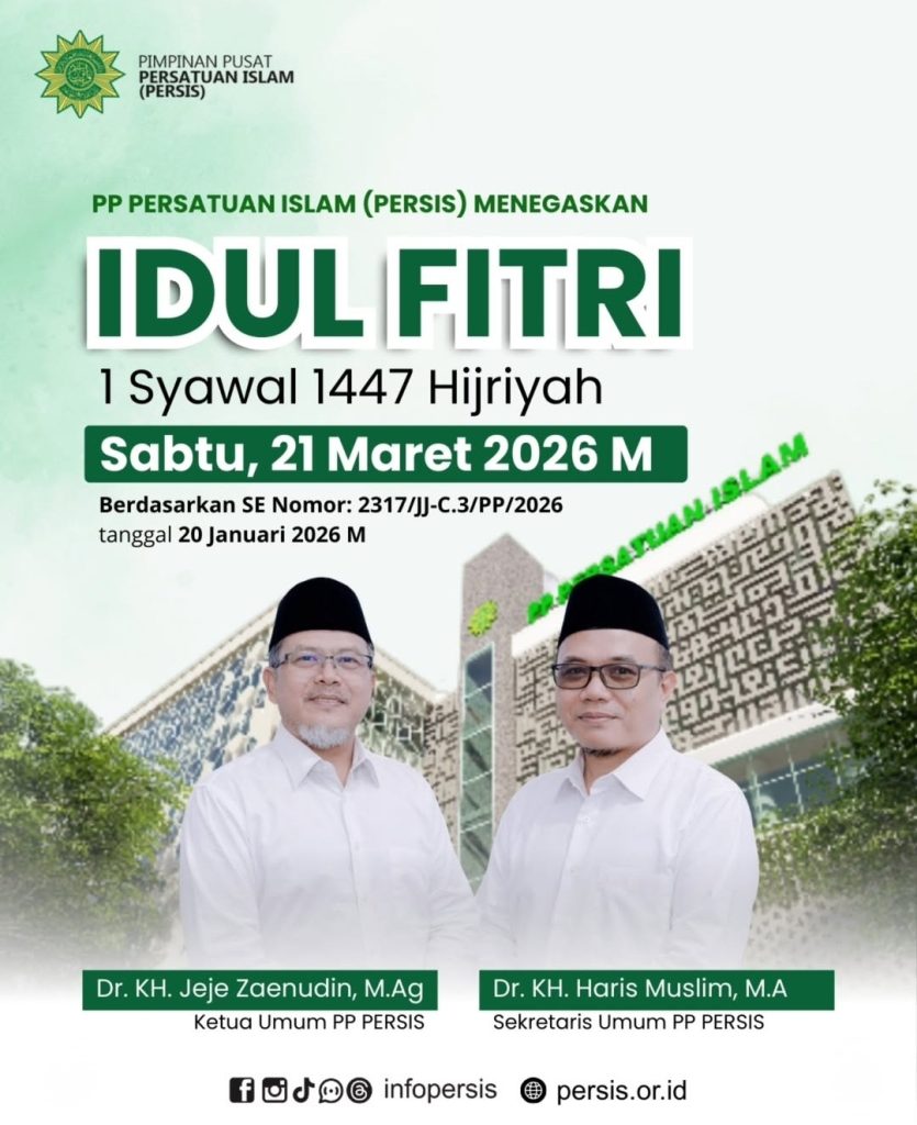 Ruminews.id, Jakarta – Pimpinan Pusat Persatuan Islam (Persis) menetapkan Hari Raya Idul Fitri atau 1 Syawal 1447 Hijriah jatuh pada Sabtu, 21 Maret 2026. Keputusan tersebut tertuang dalam Surat Edaran Nomor 2317/JJ-C.3/PP/2026 tentang penetapan awal Ramadan, Syawal, dan Dzulhijjah 1447 Hijriah yang dikeluarkan oleh Pimpinan Pusat Persis.