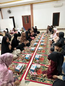 Menjelang waktu berbuka, suasana kebersamaan semakin terasa kuat. Seluruh peserta kemudian mengikuti rangkaian buka puasa bersama yang menjadi penutup hangat dari kegiatan hari itu. Momen ini tidak hanya menjadi ajang menikmati hidangan berbuka, tetapi juga mempererat silaturahmi antara tim pelaksana dan para santri dalam suasana yang penuh kekeluargaan dan kebersamaan.